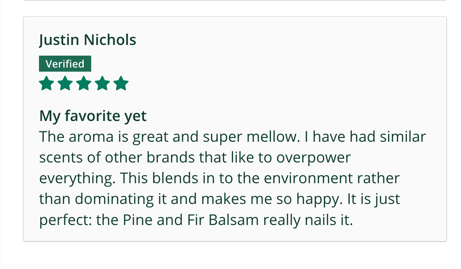 Pine & Fir Balsam Candle is a perfect blend of evergreen trees and spices. The cool Pacific fog over the pines and firs balanced with the warmth of cardamom and pepper. What makes this candle scent so enticing is the contrast and balance between the crisp cool of evergreens and the heat of the spices.